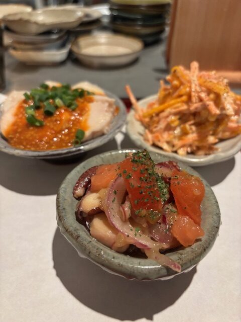 よく見れば、店を切り盛りしているのは若い女性ひとり。飲み方の早いお客の注文を、そつなく、しかしにこやかにこなしている。聞けば普段は、この近くの別の店で料理を作っているという。どおりでどこか余裕があるわけだ。時折彼女と言葉を交わしたり、陽気なお客たちを眺めたり、そんなふうにして夜は更けていく(世の人々から見ればほんの宵の口)。